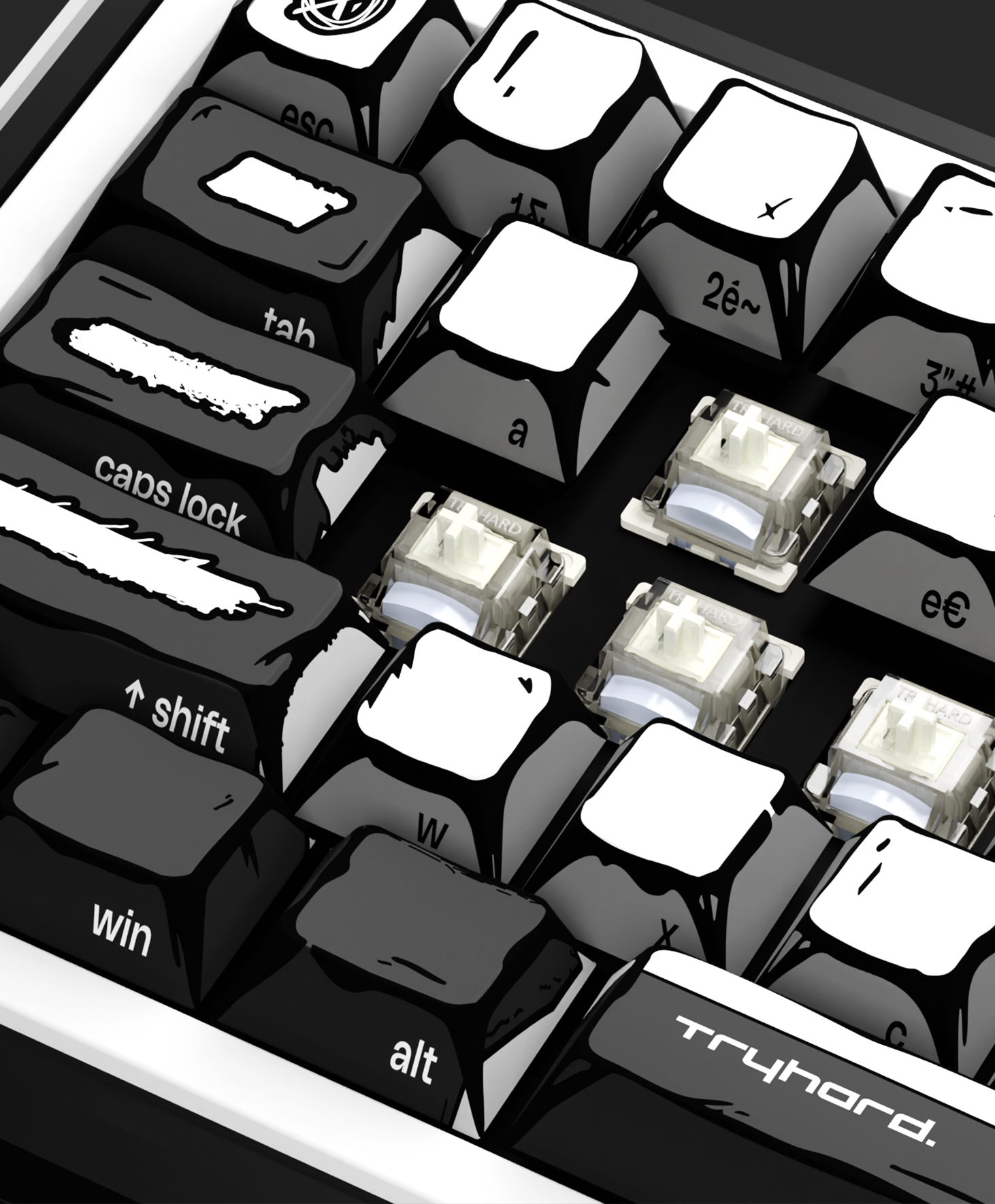 Tryhard est une marque de matériel gaming de haute qualité qui propose des périphériques au design simple et épuré et qui garantit des sensations de frappe uniques. Elle a été développée par CYRILmp4, avec un seul objectif : ne plus faire de compromis entre les performances et le style.