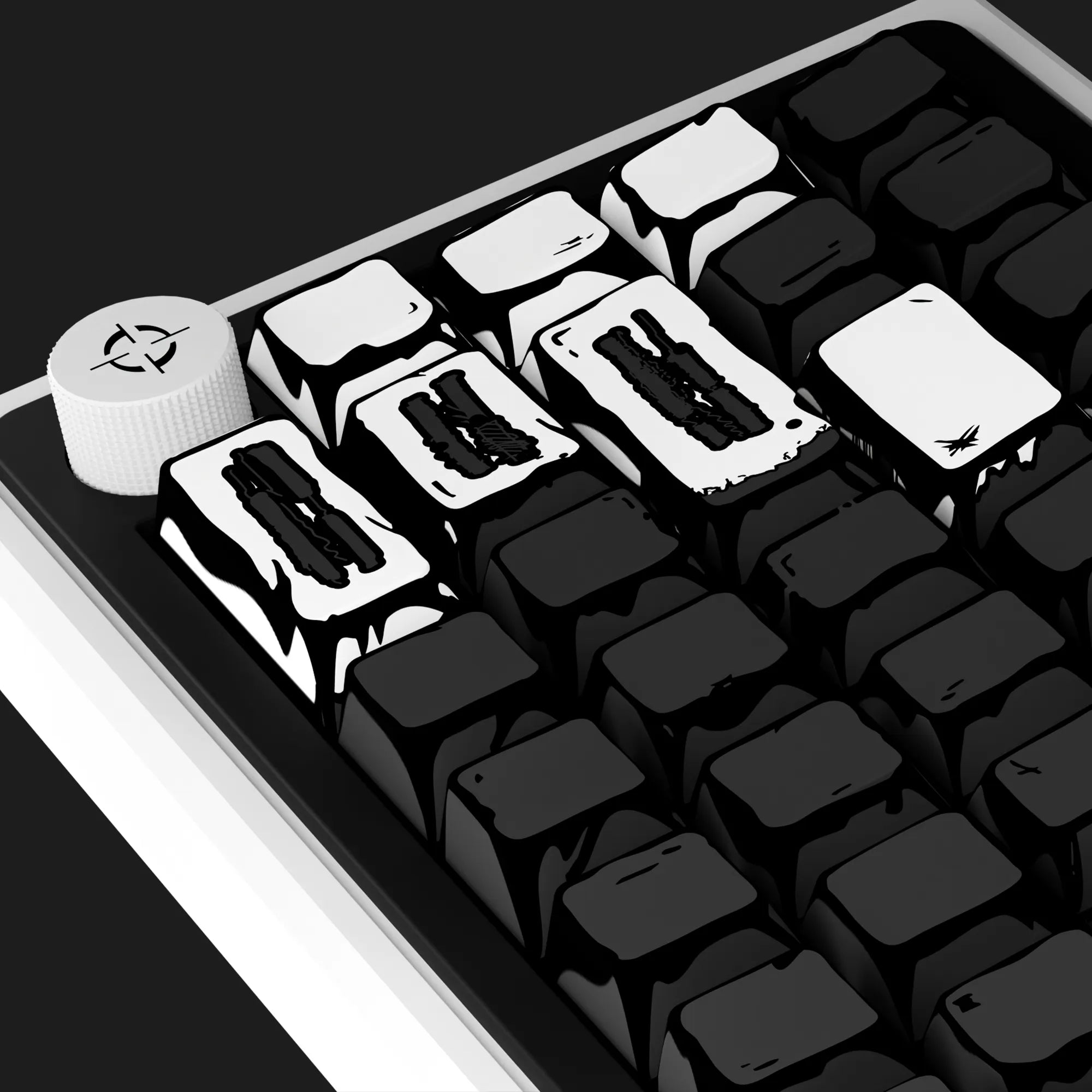 Du packaging jusqu'au moindre caractère de chaque touche, tous les éléments du clavier noir sont de la couleur opposée à celle du clavier blanc.