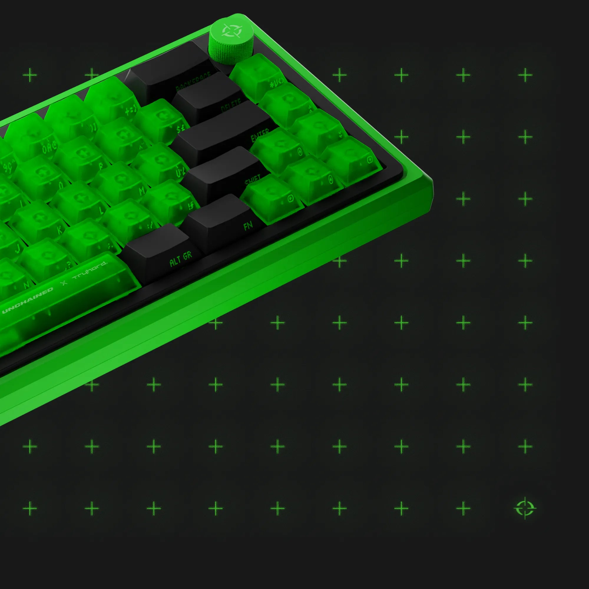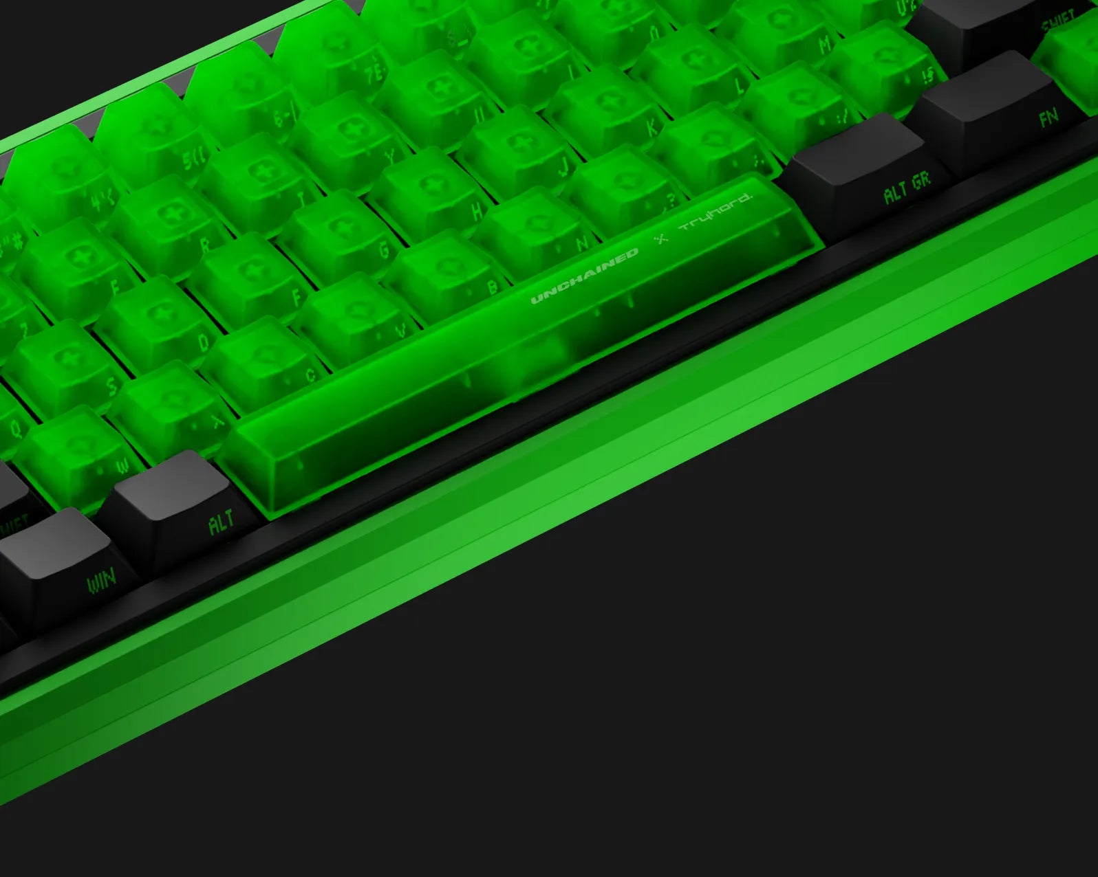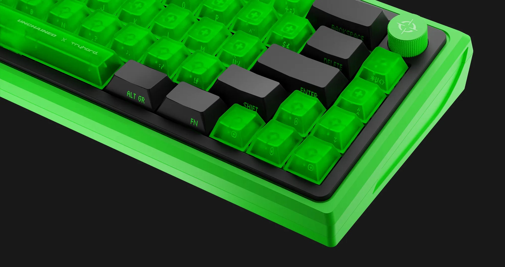 En collaboration avec le créateur de contenu Unchained. Prônant la performance et la rigueur, le vidéaste souhaitait un clavier à son image. Ce clavier ne se contente pas d’être esthétique : il offre une sensation de frappe douce et équilibrée, associant confort et réactivité pour une expérience d’écriture et de jeu à la fois fluide et agréable. Conçu dans un format ANSI en AZERTY, spécialement pensé pour le marché français, il allie esthétisme et confort d’utilisation au quotidien.