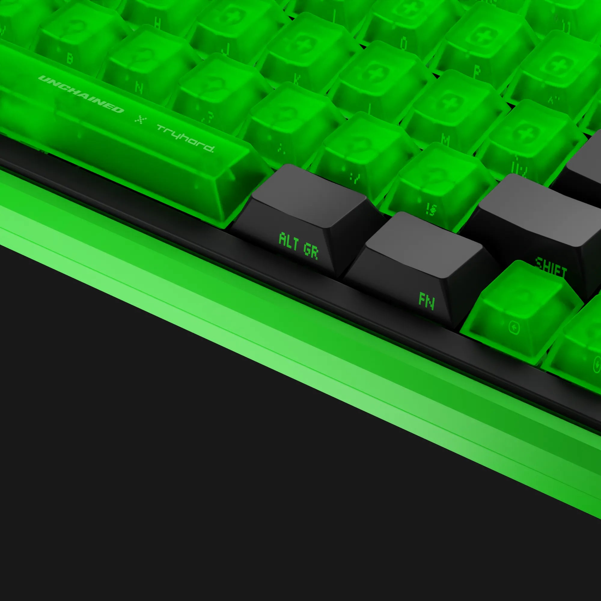 65% – Unchained, conçu en collaboration avec le créateur de contenu Unchained. Équipé de switchs magnétiques à Hall Effect développés par Tryhard, il offre une frappe sans contact ultraprécise et une durabilité exceptionnelle. Toutes les touches, le rétro-éclairage ARGB, les points d’activation et les macros sont entièrement personnalisables via le logiciel disponible sur notre site. Performant et élégant, ce clavier allie confort et exigence pour les joueurs ambitieux.