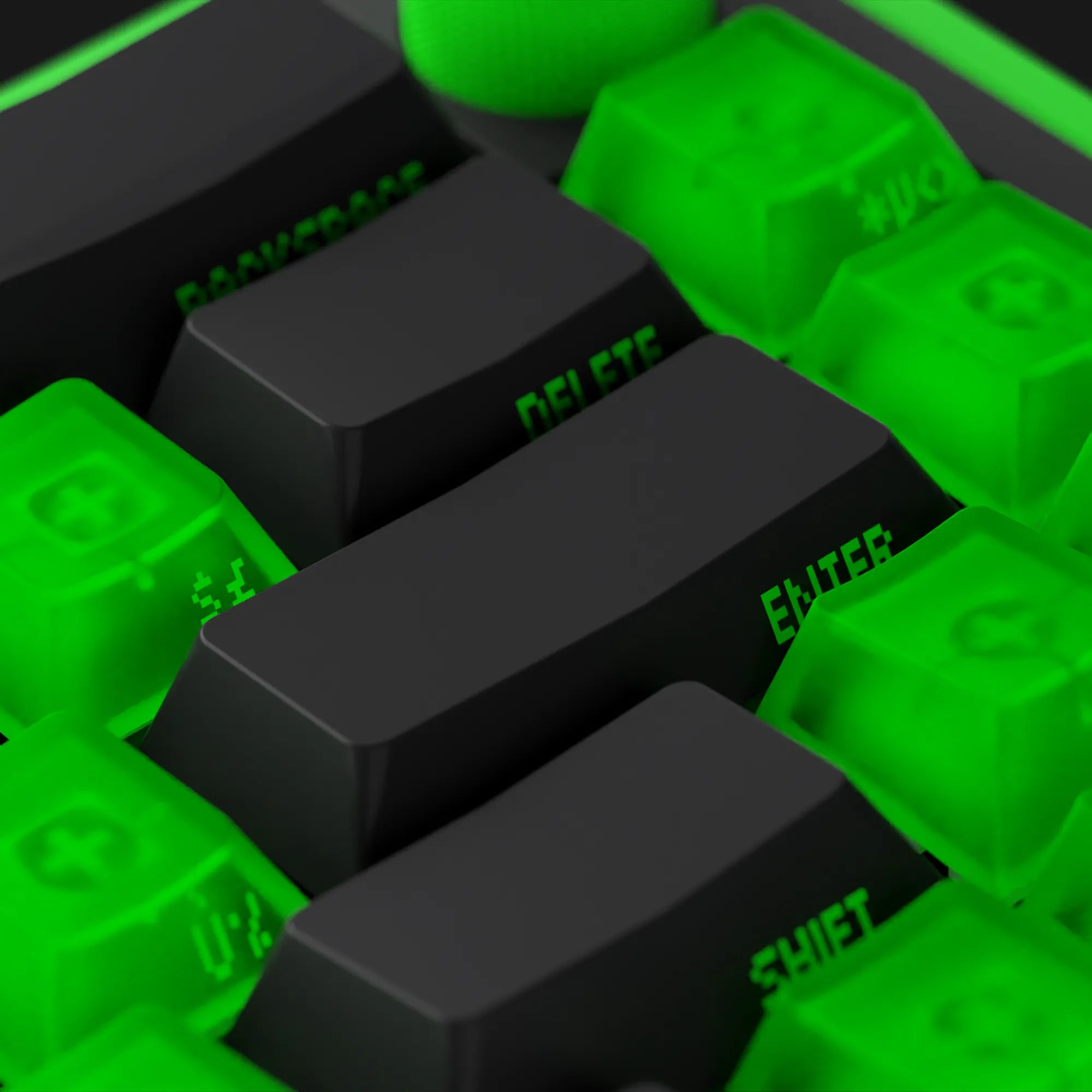 Rétro-éclairage ARGB avec la possibilité de personnaliser individuellement chaque touche. Les LEDs sont positionnées du côté inférieur des interrupteurs mécaniques, pointant vers le bas (le sud par rapport à l'utilisateur), afin de ne créer aucune interférence qu'importe le profil de touches choisi.
